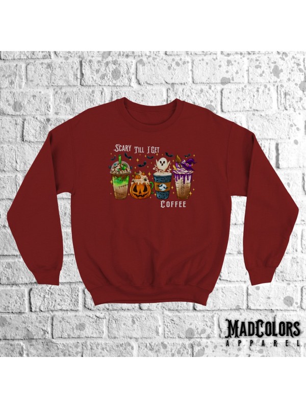 Дамско Облекло - Блуза с дълъг ръкав Halloween - Scary Till I Get Coffee