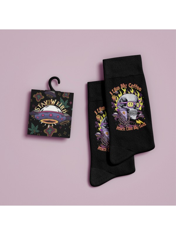 Веселите чорапчета на марката Madcolors  ще превърнат във вашето меко и удобно допълнение към всеки тоалет от вашето ежедневие. Този страхотен унисекс чифт е произведен в България и е със уникален авторски арт. Те са изработени от висококачествена плътна материя със състав от 75% памук, 21% полиамид и 4% еластан и са с универсален размер.