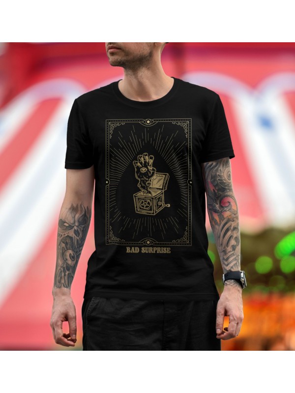 *Тениска изработена от черен памучен текстил. Изображението е устойчиво за дълъг период от време.