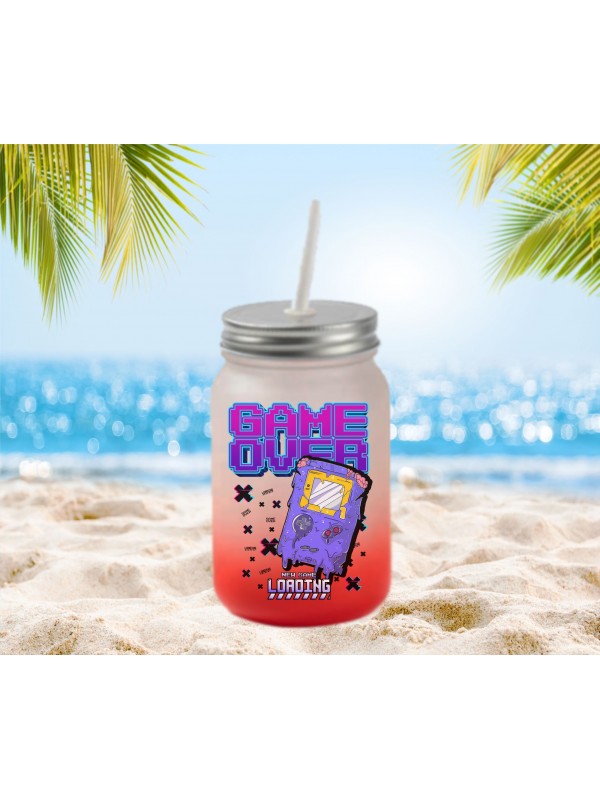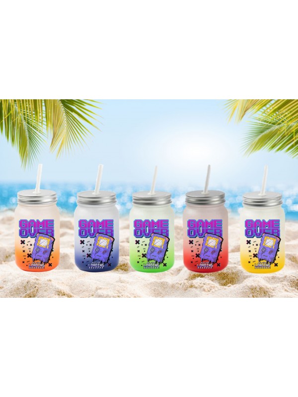 Стъклен матов буркан със сламка без дръжка, с преливащ цвят от дъното