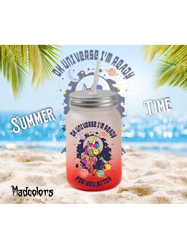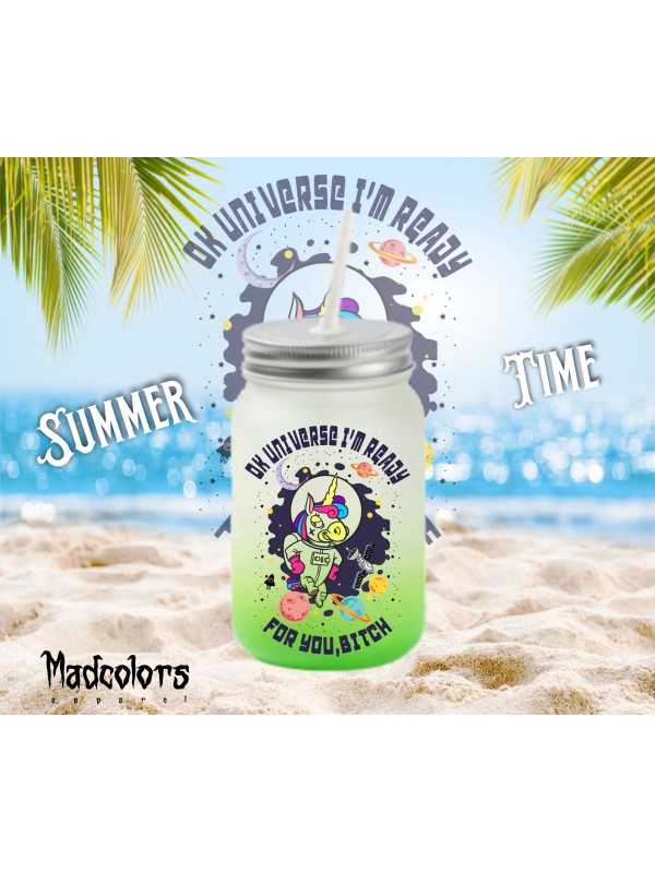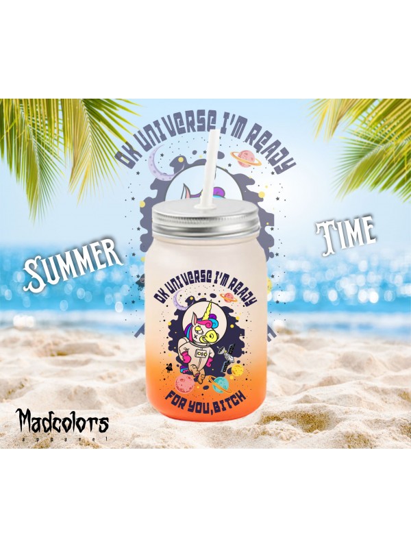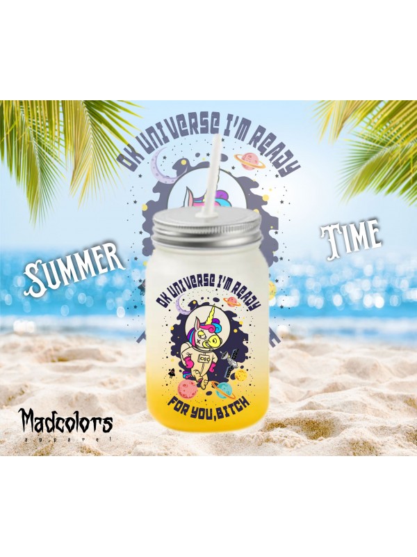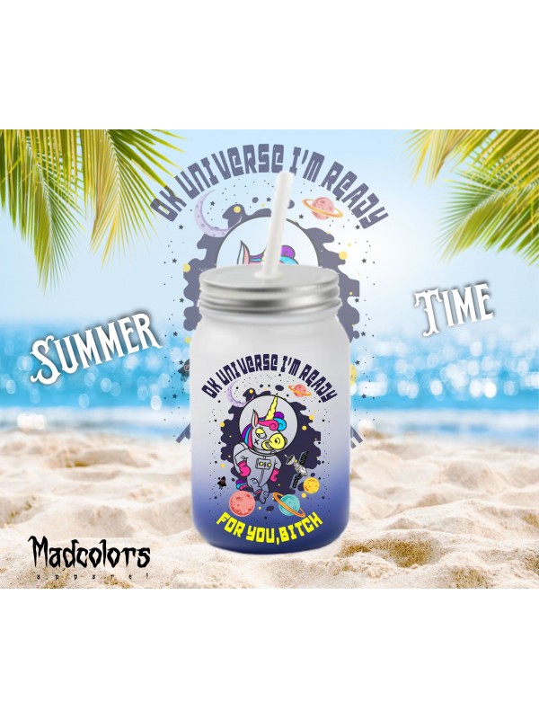 Аксесоари - Стъклена чаша буркан Madcolorsapparel - OK UNIVERSE I'M READY FOR YOU BITCH