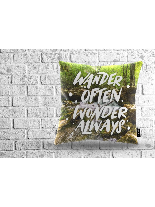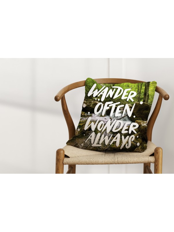 Декорация за дома и офиса - Декоративна възглавница с надпис Wander often wonder always