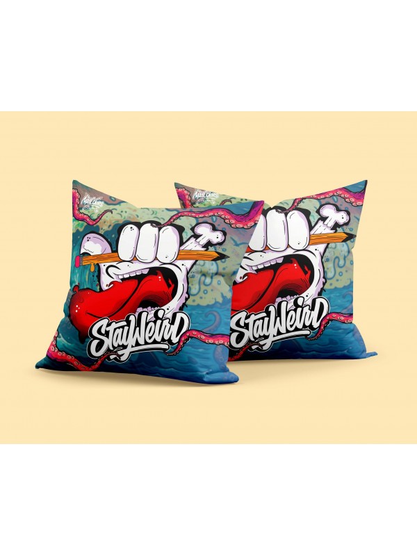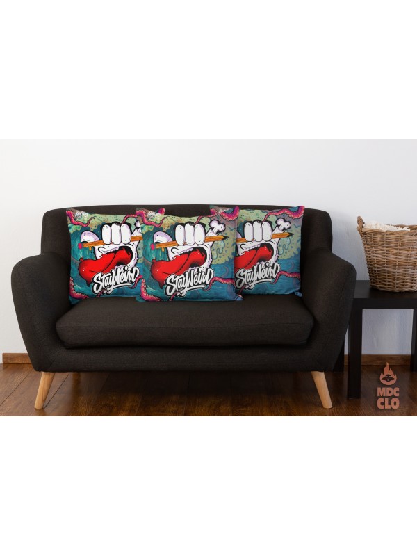 Изработена с безкомпромисно качество и устойчивост, тази декоративна възглавница Stay Weird е създадена за хората, които не се вписват в рамки.