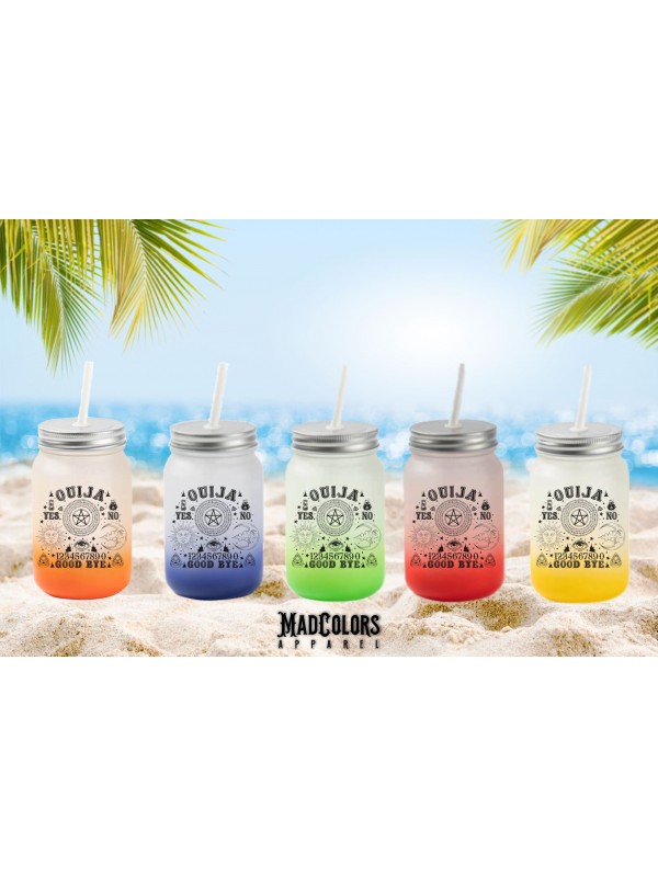 Стъклен матов буркан със сламка без дръжка, с преливащ цвят от дъното