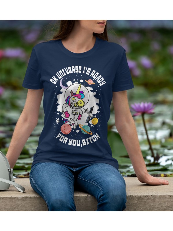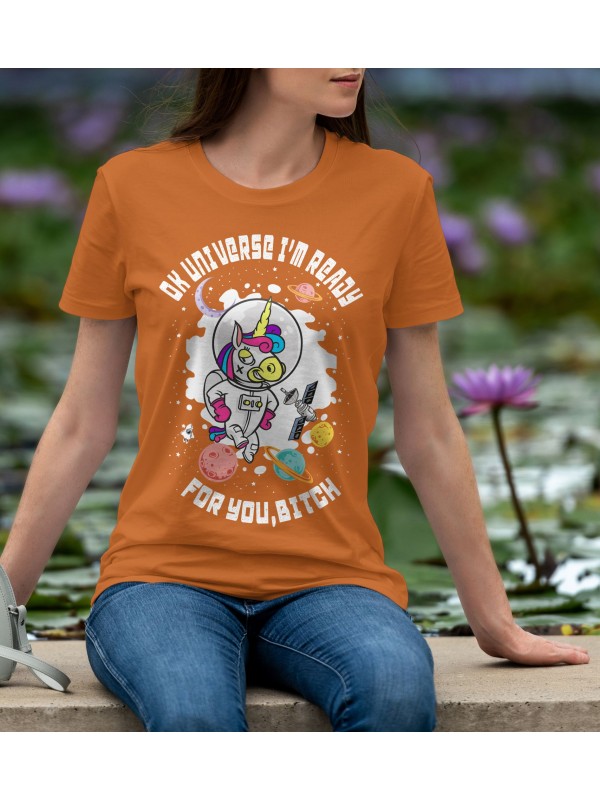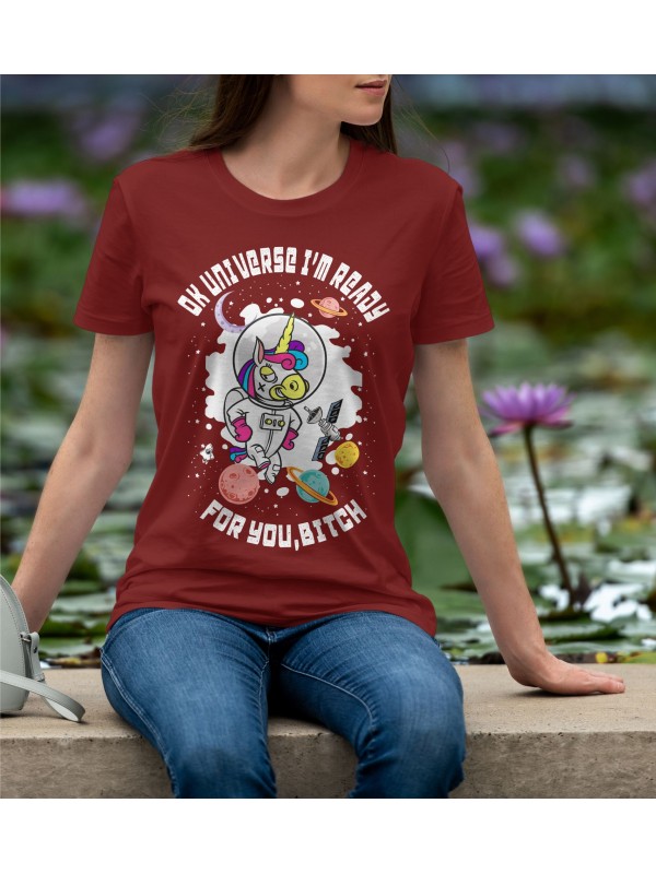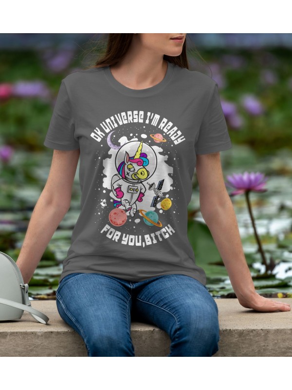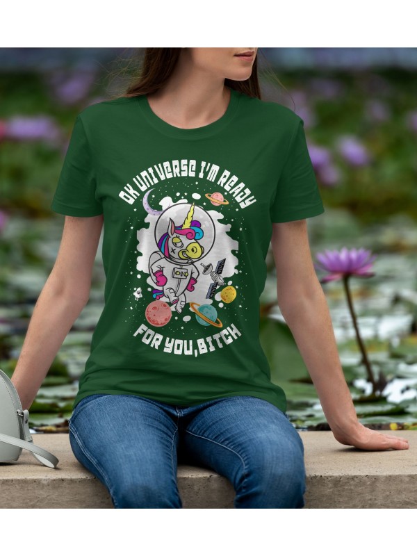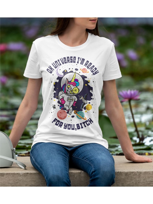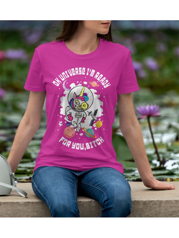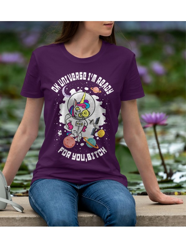 Дамско Облекло - Дамска тениска Madcolorsapparel - OK UNIVERSE I'M READY FOR YOU BITCH