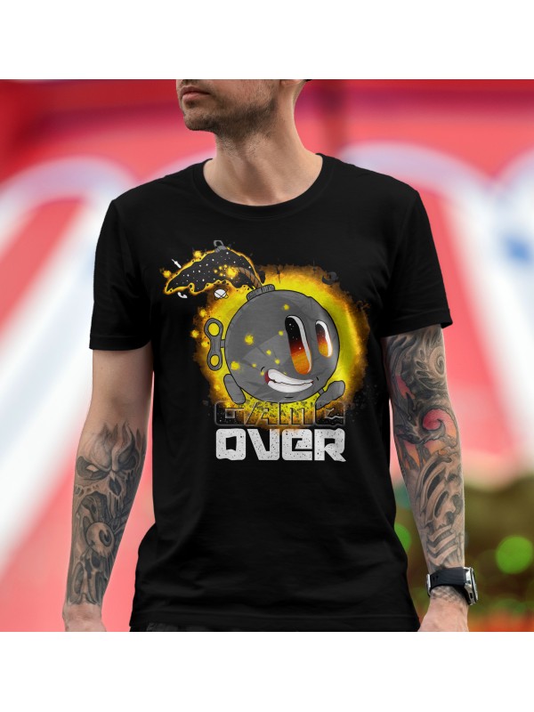 *Тениска изработена от черен памучен текстил. Изображението е устойчиво за дълъг период от време.